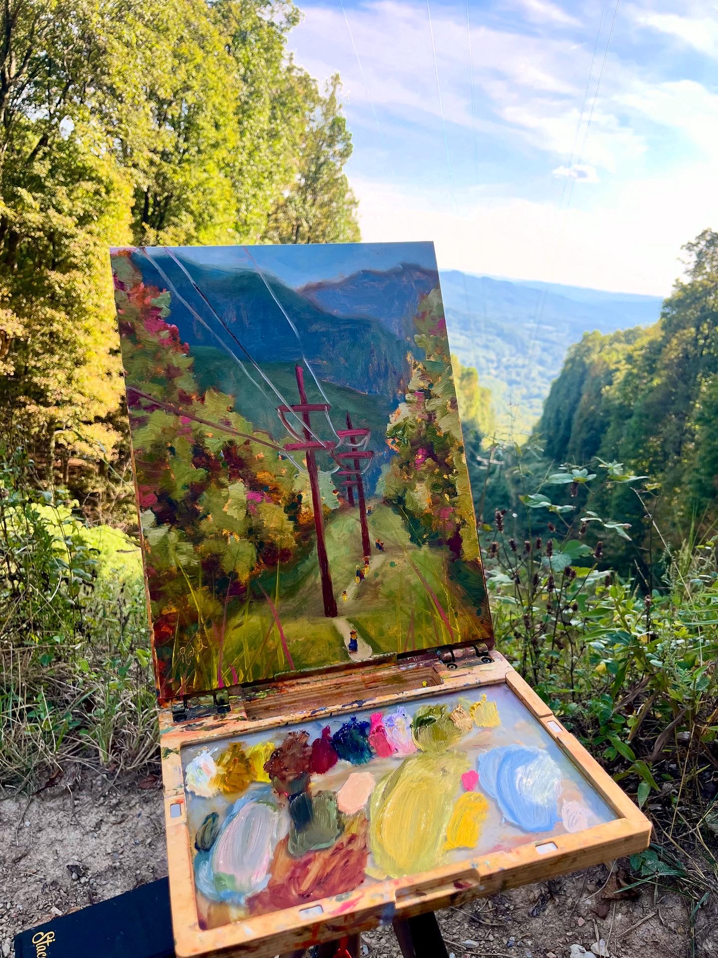 Plein air painting connects me not only to the subject, but also to my community. As we gain new experiences, we always have something to learn from one another. You can spot me painting en plein air at competitions, or set up along the course at a trail race.